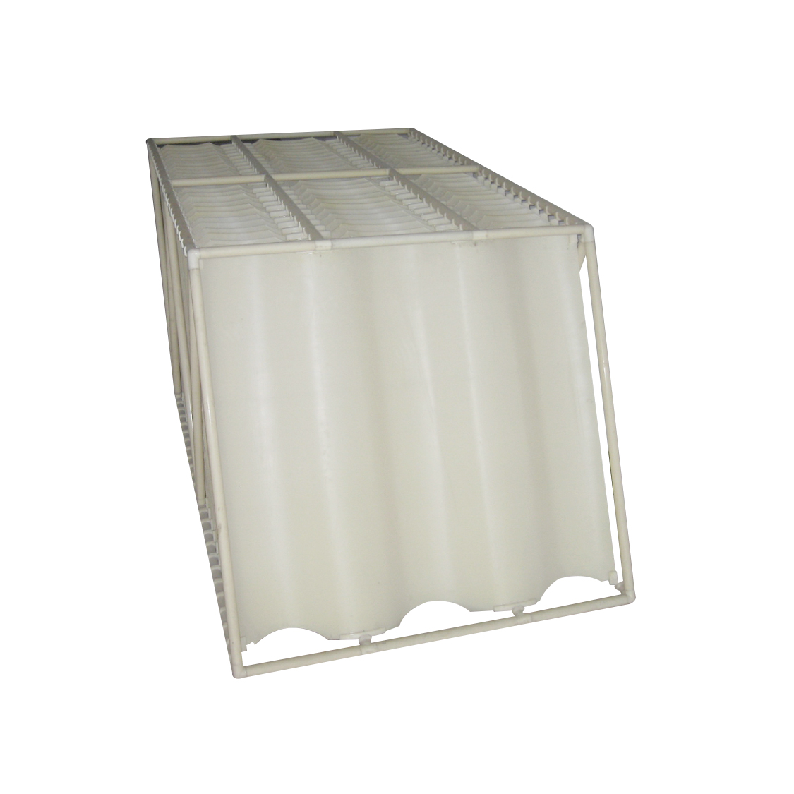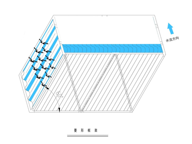 ● 波形斜板平行排列放置于斜端面框架之中,由弧形托将其固定在框架上,形成一个波形板组单元。